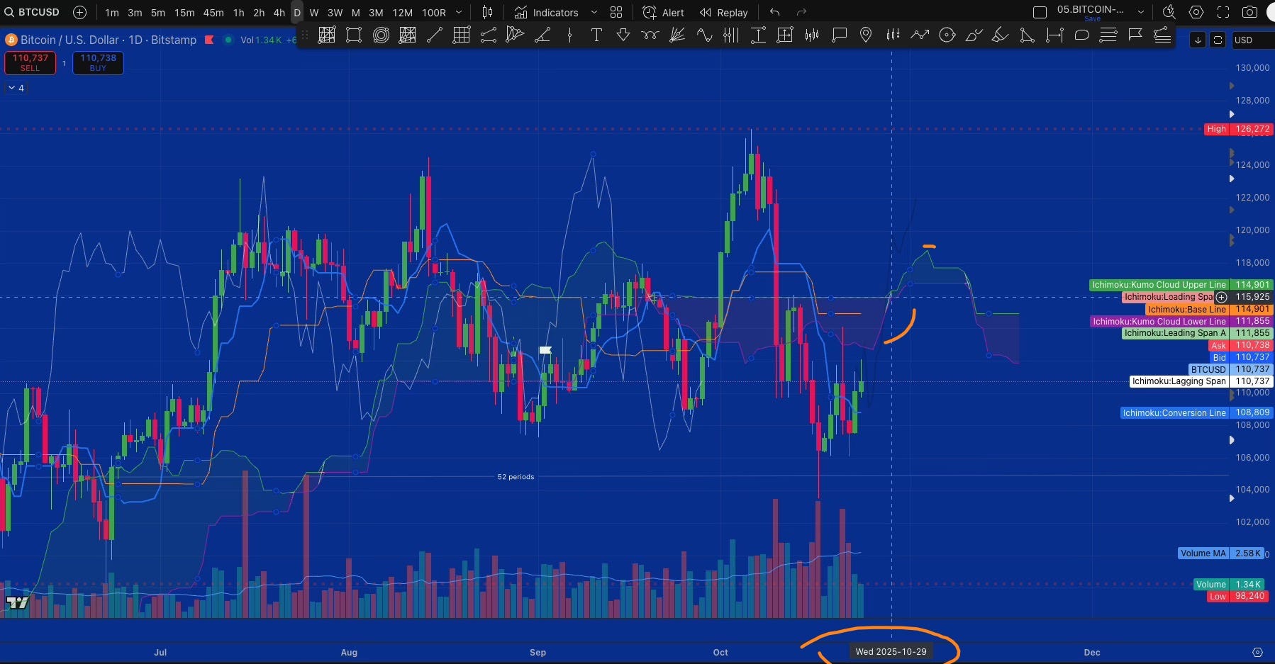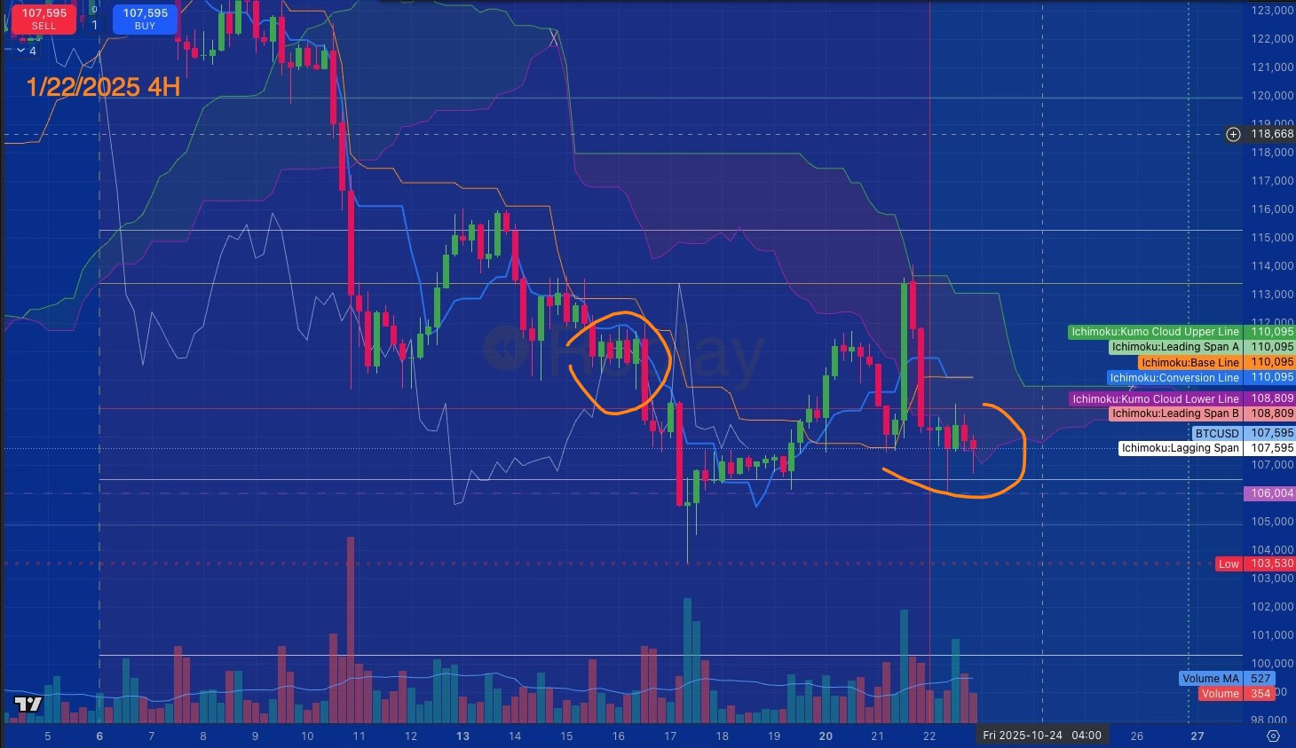 Next week is decisive: October 27–28 is when the Chikou must clear the cloud and the breakout must prove sustainable.