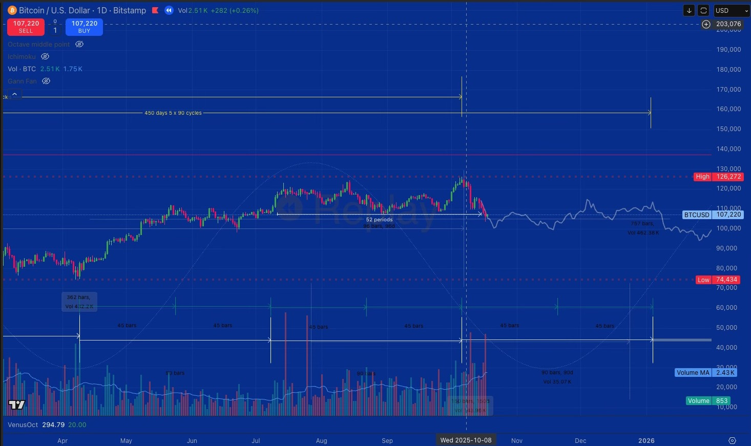 → Targets 113 k → 116 k (aligns with Gann Venus cycle).