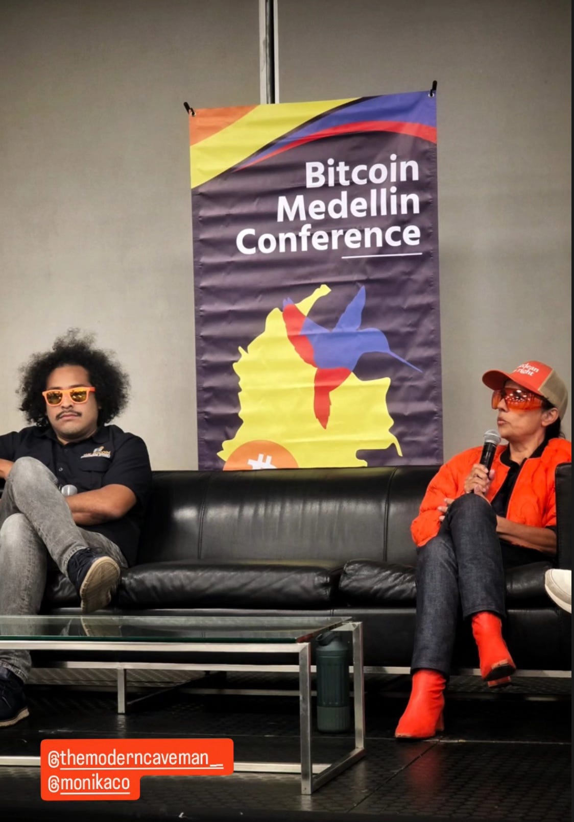I do very well when people ask me questions. I’ve been doing this for a long time, especially as an artist. Since last year, I’ve wanted to do presentations, but the subjects I choose are very layered, very deep, and synthesized. If you don’t have the kind of mind I have, you might miss the connection. Maybe I’m too ambitious. I want to write like a thesis and spell it out in twenty minutes, hoping people will get into it. I was told by someone I trust to write a script so I don’t lose myself in time. I tried it twice, both at Adopting Bitcoin and here in Medellín. I love challenges, yet I have to be honest, it doesn’t feel like me.
