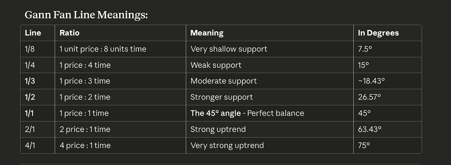 The 1/3 line represents 1 unit of price movement for every 3 units of time