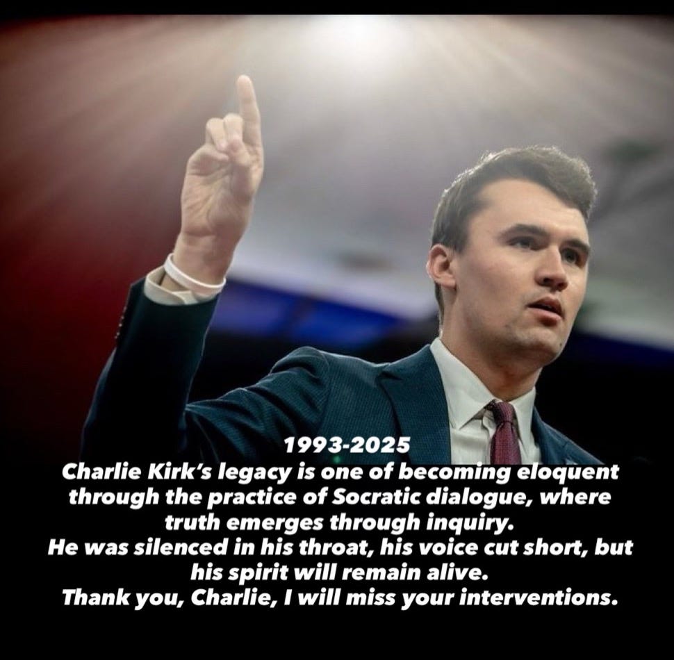 Note: Charlie Kirk (1993–2025) was the co-founder and CEO of Turning Point USA, serving as its chief fundraiser and public face from its founding in 2012 when he was 18 years old until his death. According to The New York Times, he turned the organization into a well-funded media operation backed by conservative donors. On September 10, 2025, while on stage at Utah Valley University for a TPUSA event known as “The American Comeback Tour,” Kirk was shot in the neck. The shooting took place around noon as the event began.