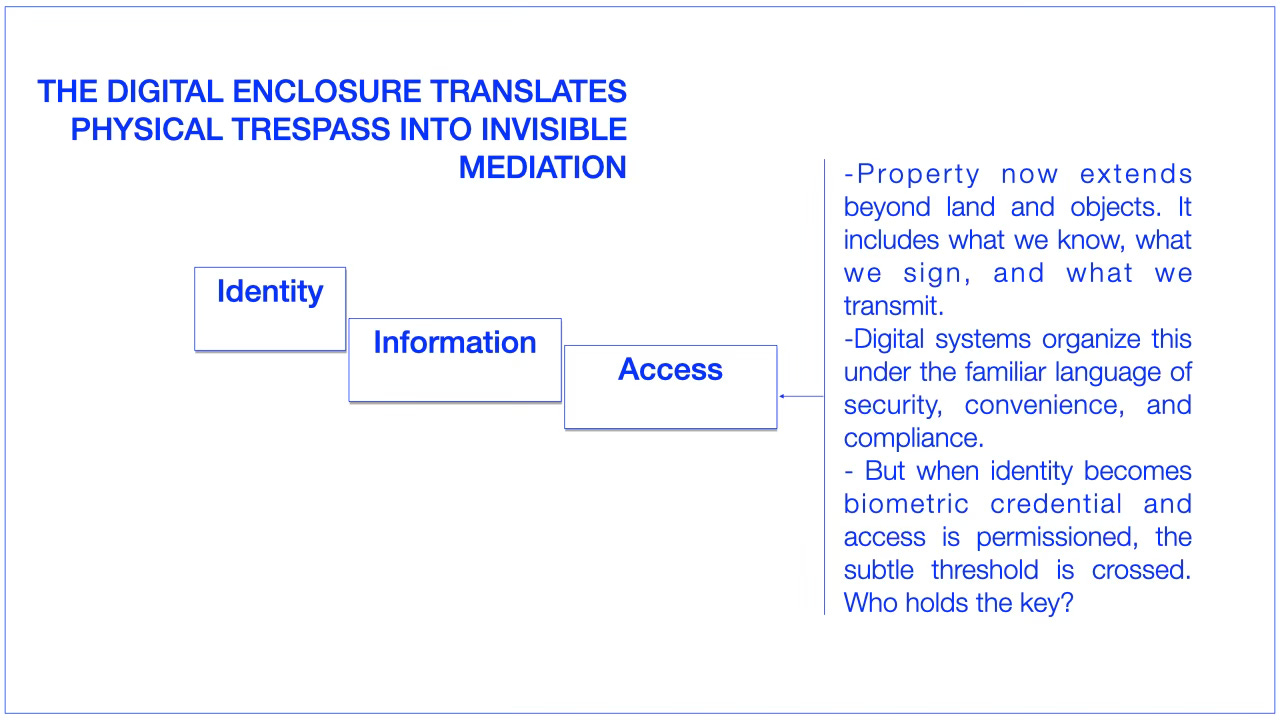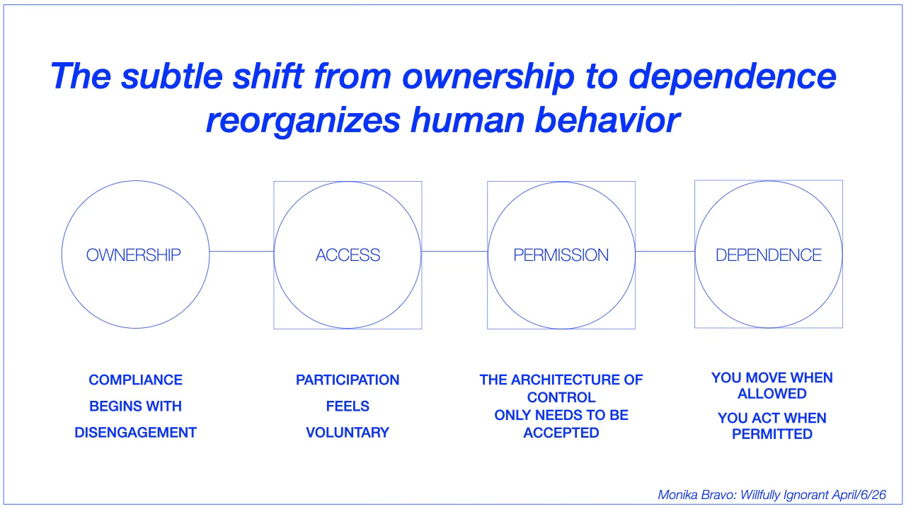Digital systems are being built to organize access of identity, and willing participation. The language used is familiar: it deals with security, probably with convenience. But when identity becomes a credential issued, when participation requires continuous authorization, when ownership is mediated through systems that can be updated, restricted, or revoked, the nature of property shifts, hence conditional.